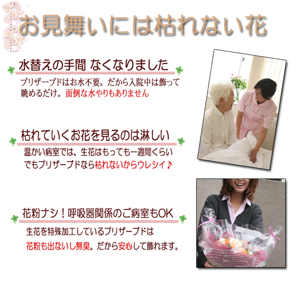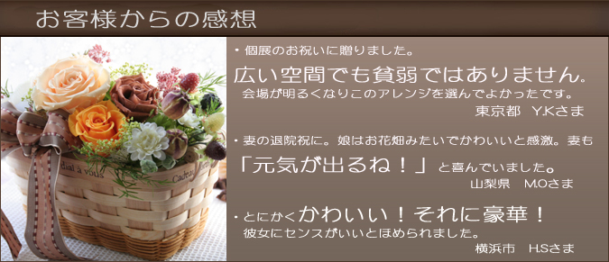 ■初心者さんでも安心 取扱説明書■ 贈物の場合 先方様がプリザーブドのことを ご存じなくてもご安心を。 アレンジ1つにつき1枚 お取り扱い説明書をお付けしています。 注意事項を守ってより長くお楽しみください。 |