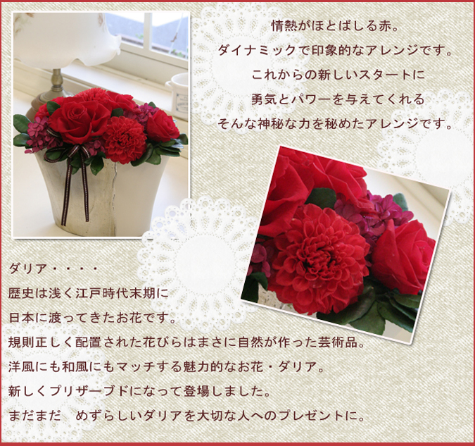■初心者さんでも安心 取扱説明書■ 贈物の場合 先方様がプリザーブドのことを ご存じなくてもご安心を。 アレンジ1つにつき1枚 お取り扱い説明書をお付けしています。 注意事項を守ってより長くお楽しみください。 |